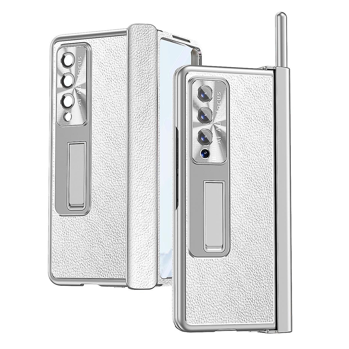 Für Samsung Galaxy Z Fold4 5G Magnetische Kunststoff / Glas Handy Tasche Hülle Etuis Silber + Stift