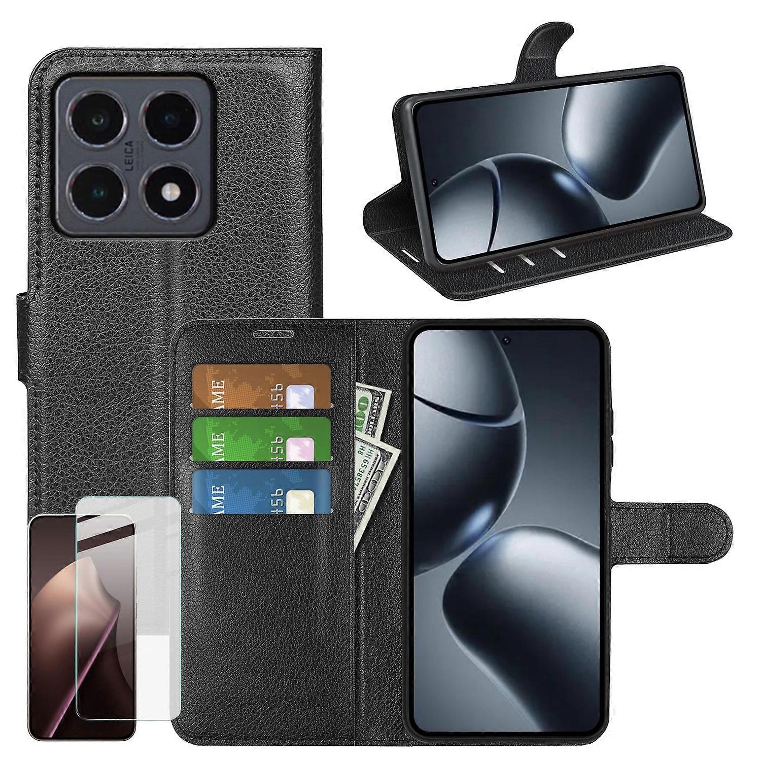 Für Xiaomi 15T Kunstleder Book Wallet Hülle Schwarz + 9H Hart Glas