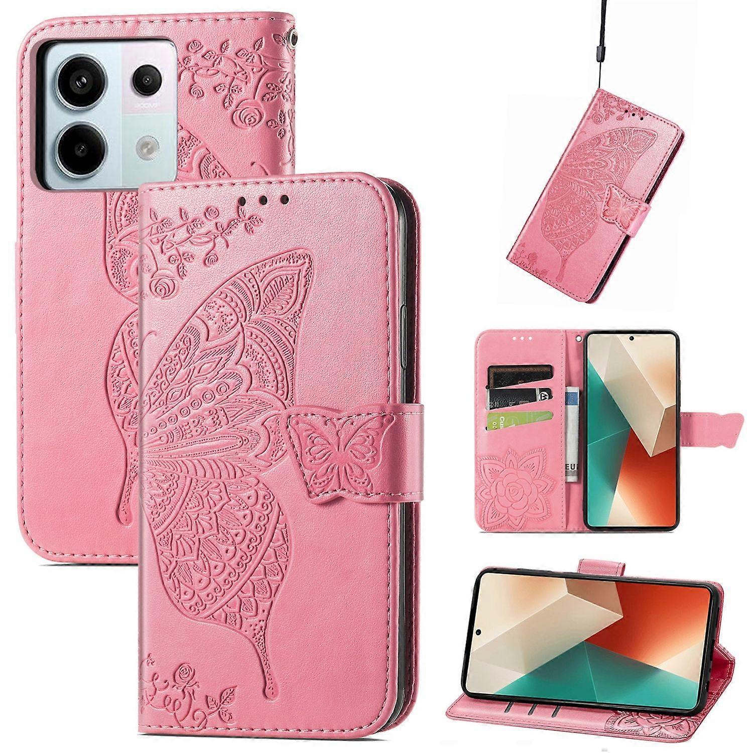 Für Xiaomi Redmi Note 13 Pro / Poco X6 Kunstleder Wallet Handy Tasche Schmetterling Design Schutz Hülle Pink