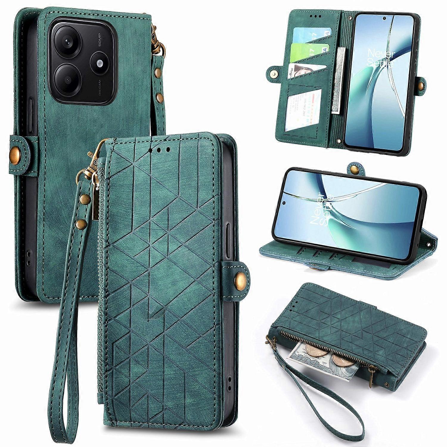 Für Xiaomi Redmi Note 14 5G Kunstleder Zipper Book Wallet Tasche Grün