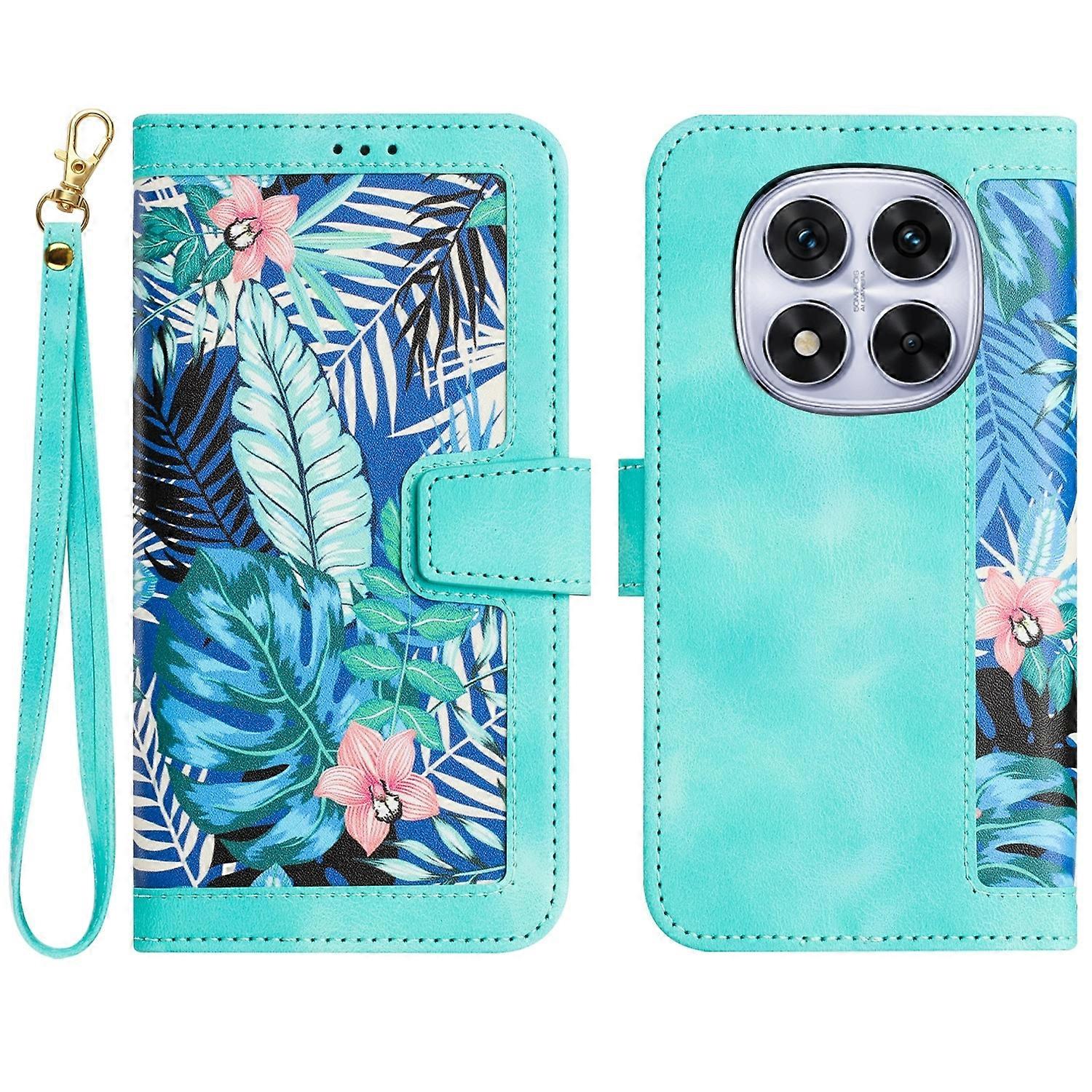 Für Xiaomi Redmi Note 14 Pro 5G Kunstleder Book Blumen Hülle Case Grün