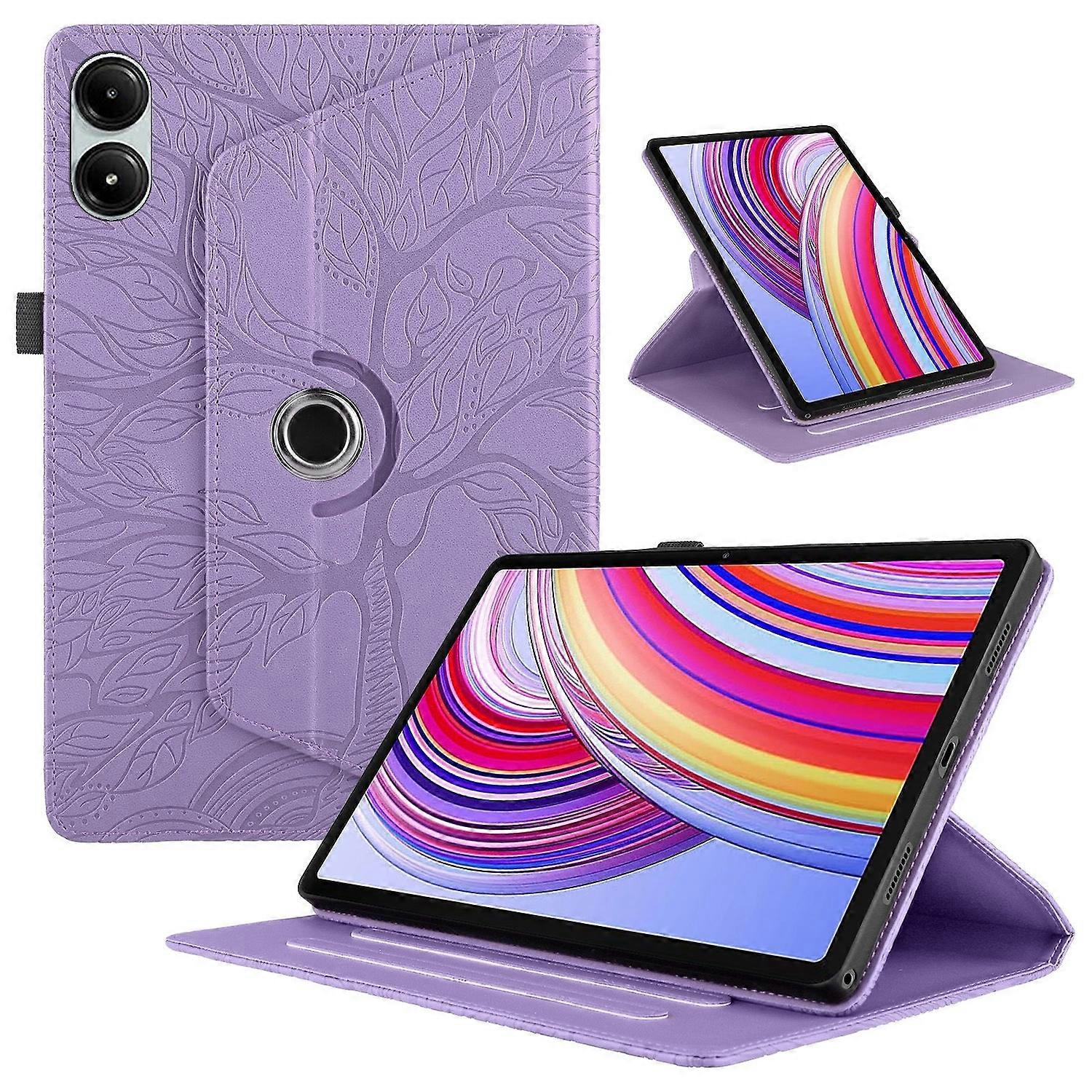 Für Xiaomi Redmi Pad Pro 12.1 Zoll 360 Grad Rotation aufstellbare Baum Muster Kunstleder Hülle Tasche Case Lila