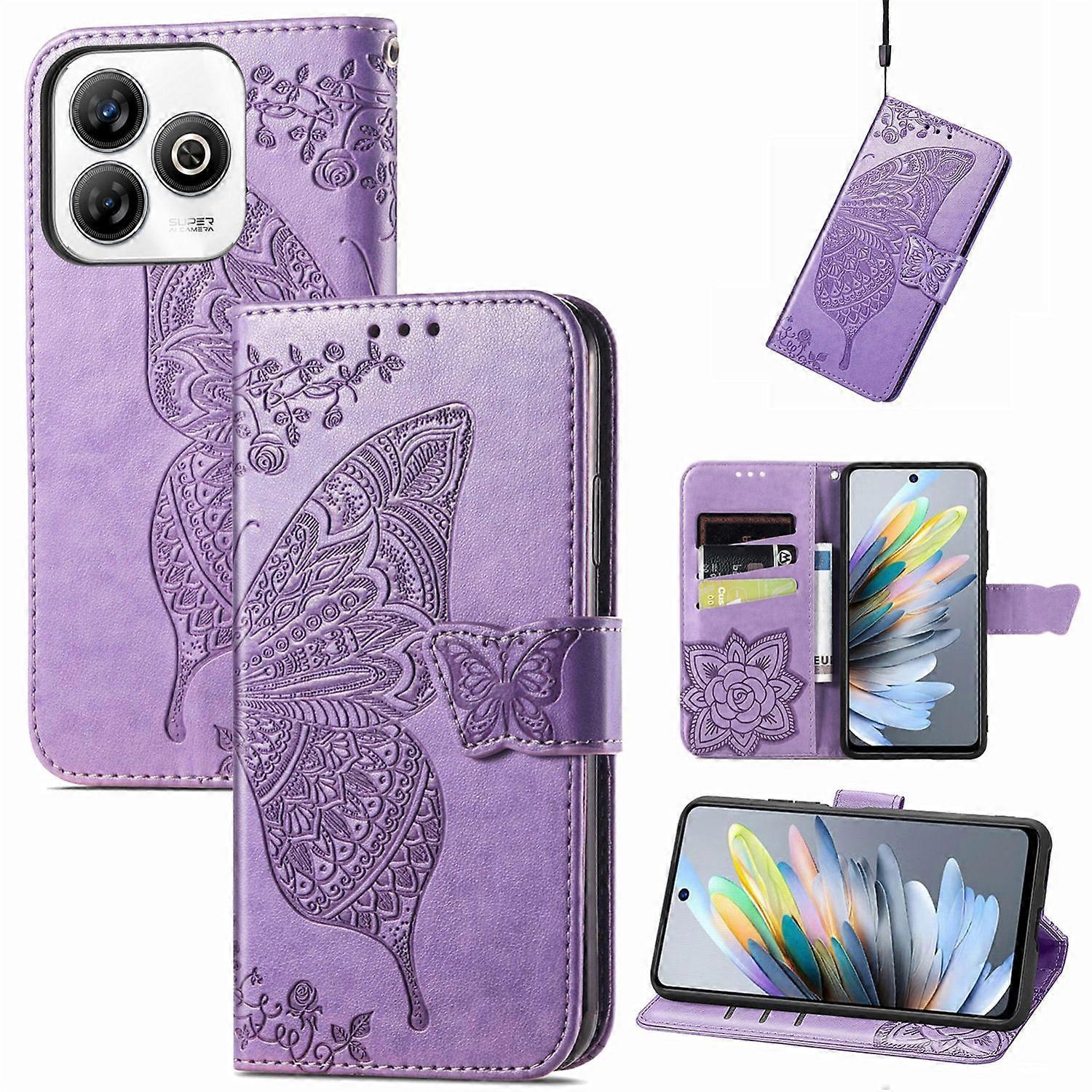 Für ZTE Blade A75 4G Kunstleder Schmetterling Hülle Tasche Hell-Lila
