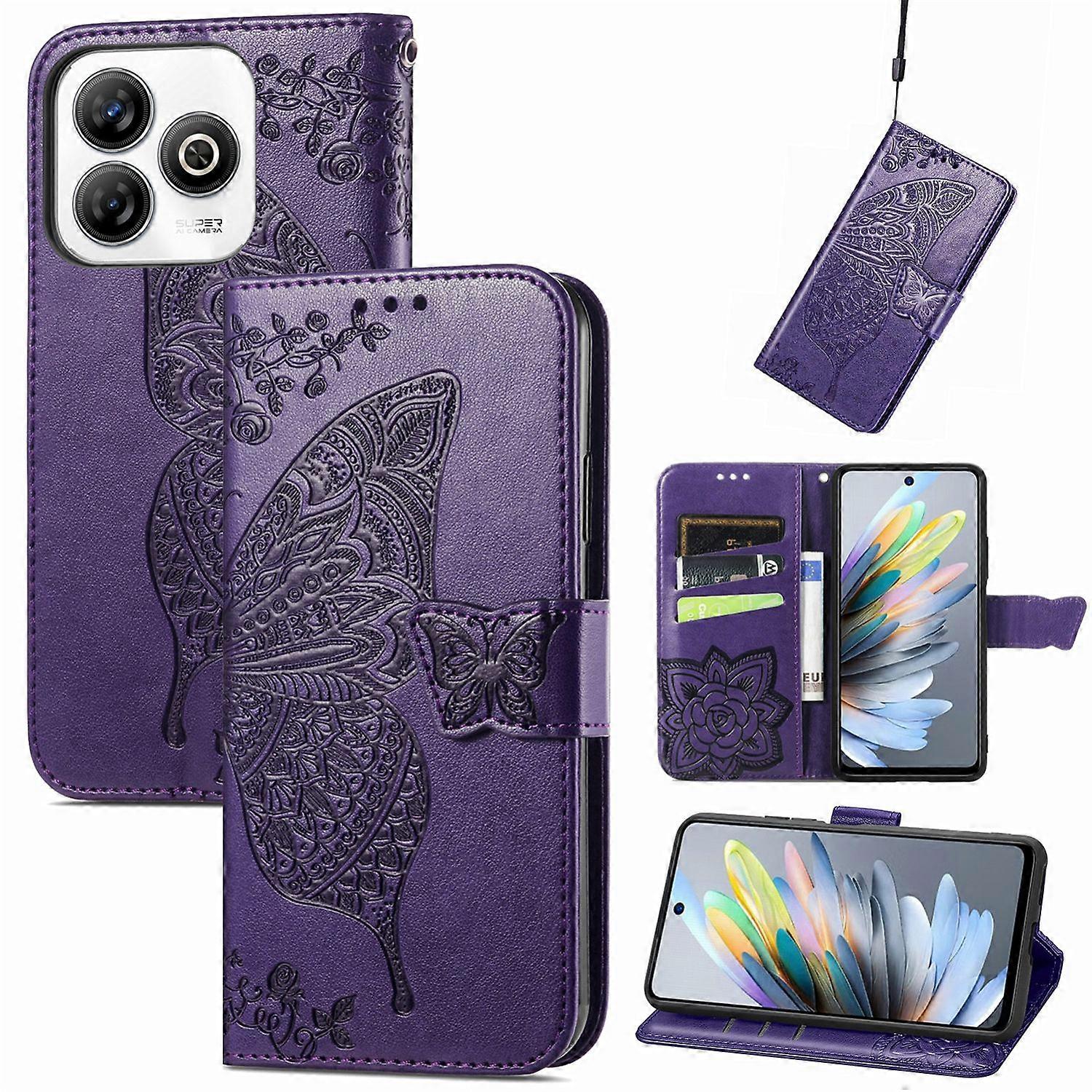 Für ZTE Blade A75 4G Kunstleder Schmetterling Wallet Hülle Tasche Lila