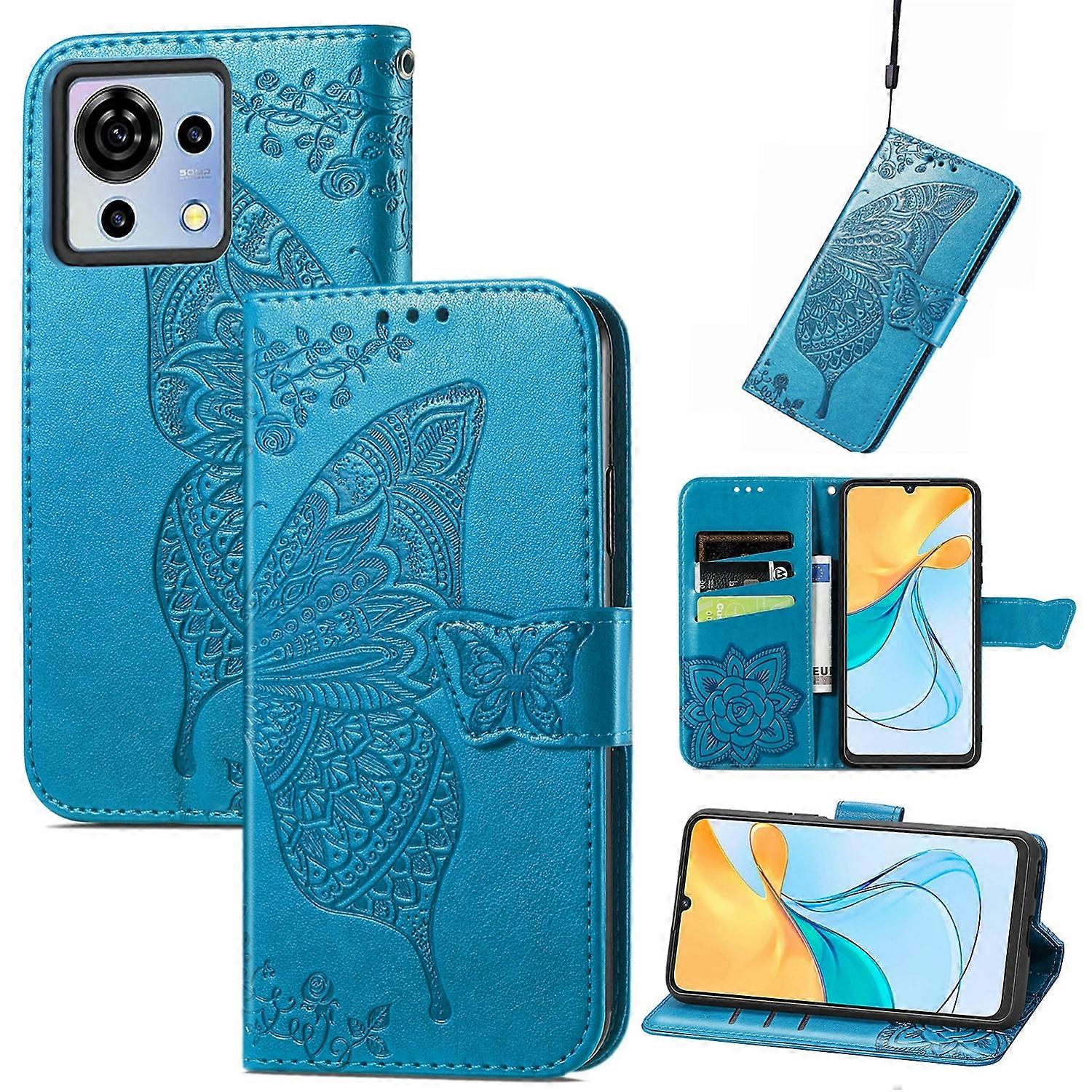 Für ZTE Blade V50 Vita Kunstleder Wallet Handy Tasche Schmetterling Design Schutz Hülle Case Cover Etuis Blau