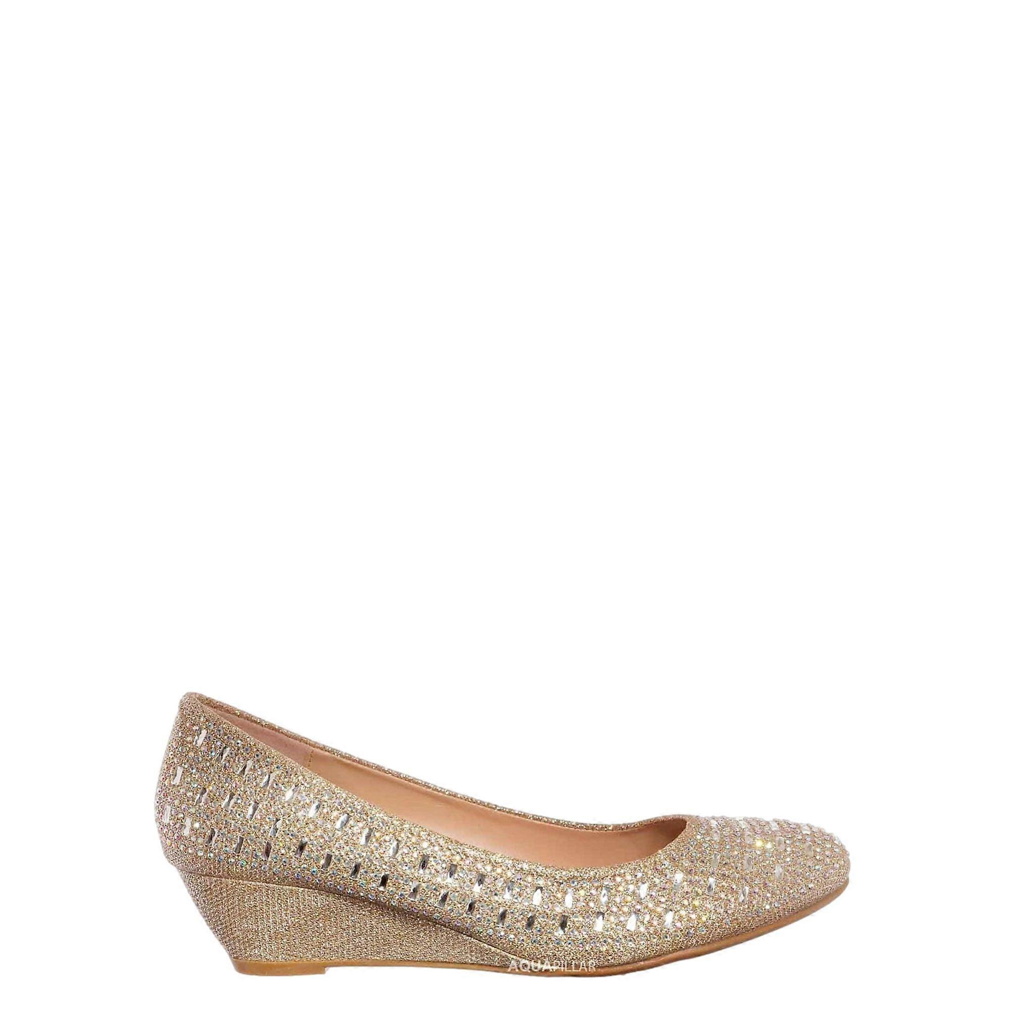 Forever Link Low Wedge Heel Closed Toe Sandals Champagne FOREVERLOW Women's
