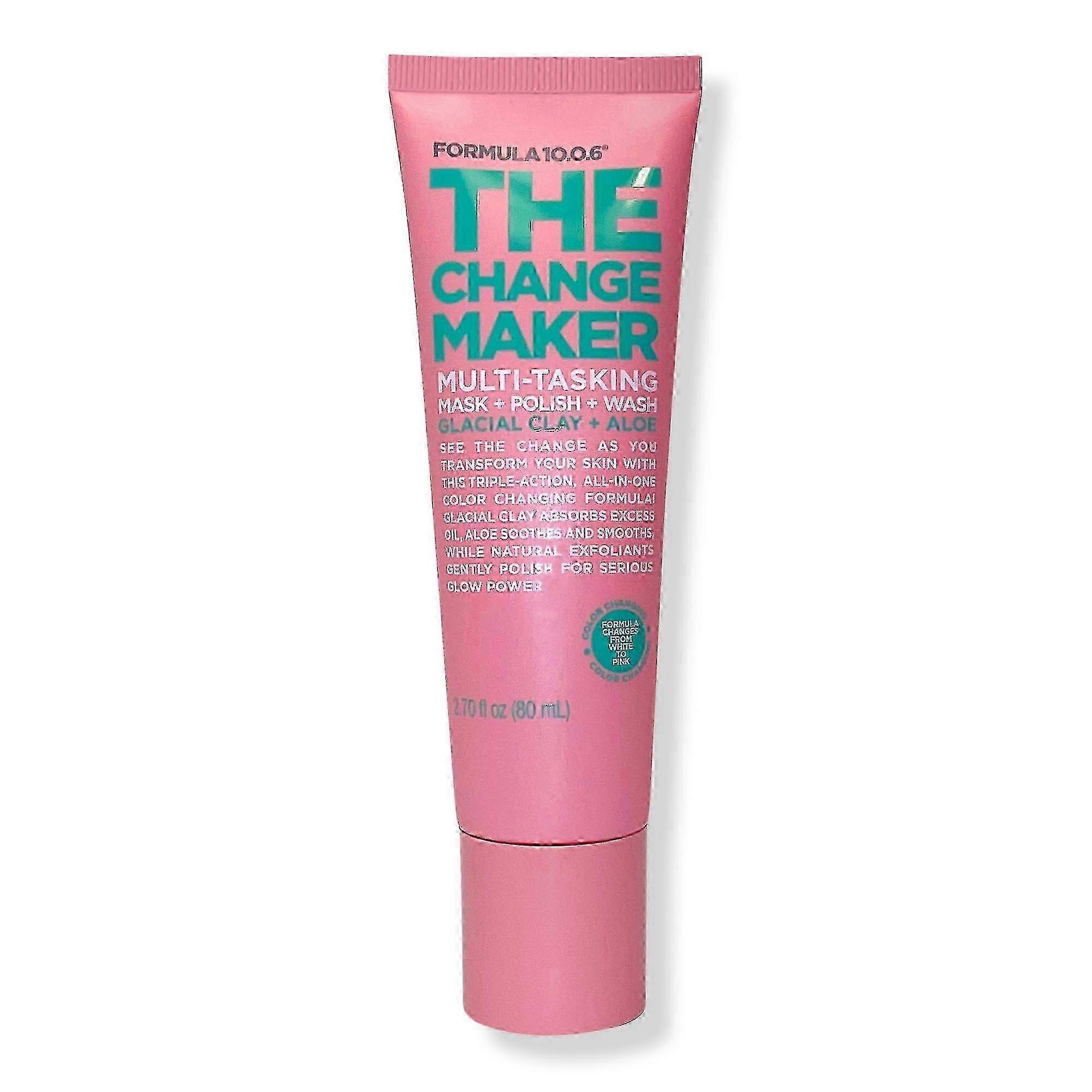 Formula 10.0.6 The Change Maker Multi-Tasking Mask + Polish + Wash transforms skin with a triple-action, all-in-one color changing formula. Glacial clay absorbs excess oil, aloe soothes and smooths, while natural exfoliants gently polish for a series glow.