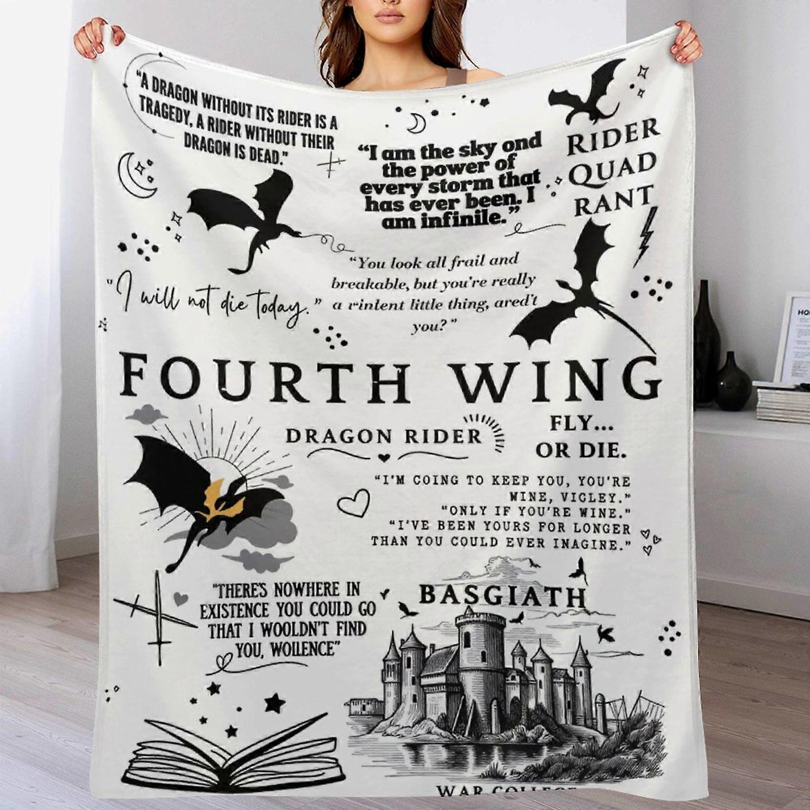 "Fourth Wing" Dragon Rider Quote Print Flannel Blanket - Soft Warm Throw for Bedroom | Book Lover Gift for Fantasy Fans
