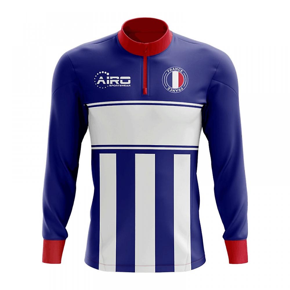 Exclusive France Football Half Zip Midlayer Top from the Airo Sportswear range which is available in all kids and adult sizes.Show your support for the France national team with this stylish, premium half Zip Midlayer Top which is perfect for providing that extra warmth when training.This training is a stretchy, lycra type material. It\'s unique design will make you stand out as a supporter of the France National Team. Manufactured in limited quantities, this training top is perfect for loyal fans Concept Kits are unofficial, supporter design jerseys which are not affiliated with the team or worn by the players