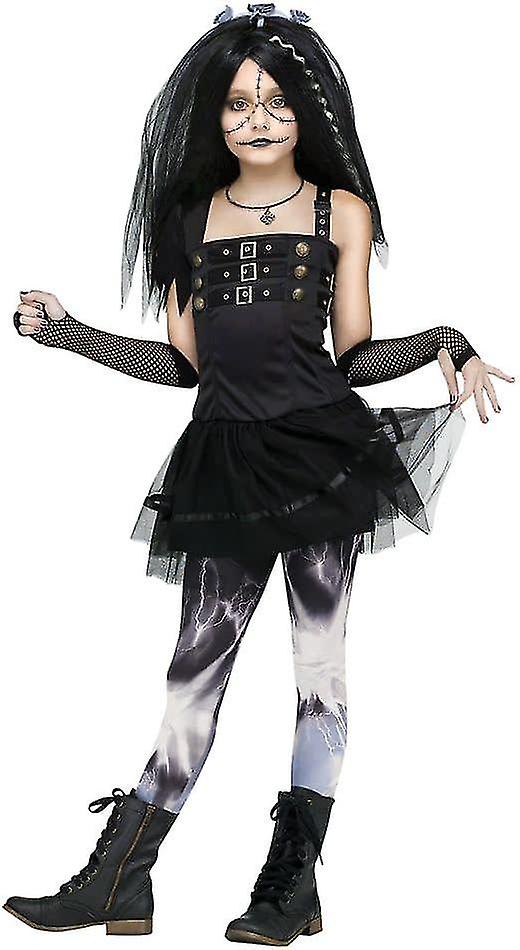 Frankie'S Bride Child Costume Includes Dress With Belt And Buckle Look At Neckline, Black Veil, Black Fishnet Glovelets, And Footless Tights.