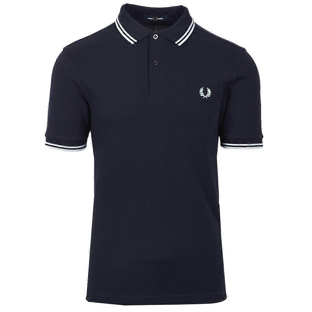 Fred Perry Silver Blue Twin Tipped Collar Dark Navy Blue Polo Shirt