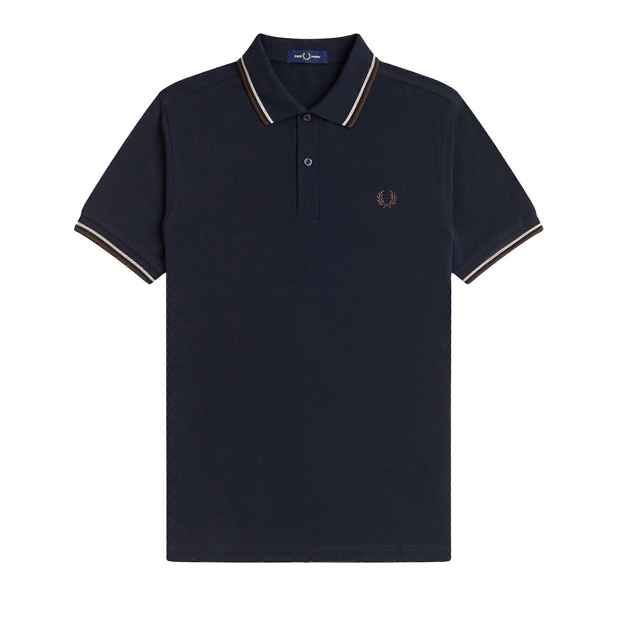 The Fred Perry Twin Tipped Polo Shirt in Navy/Warm Oat/ Burnt Tobacco features a regular fit design crafted from premium cotton piqué. Distinguished by its signature twin-tipped collar and cuffs, this classic piece includes a practical two-button placket. The iconic Laurel Wreath embroidery completes this quintessential Fred Perry garment. Regular fit Two button placket Twin-tipped collar and cuffs 100% Cotton Logo embroidery Fred Perry branding