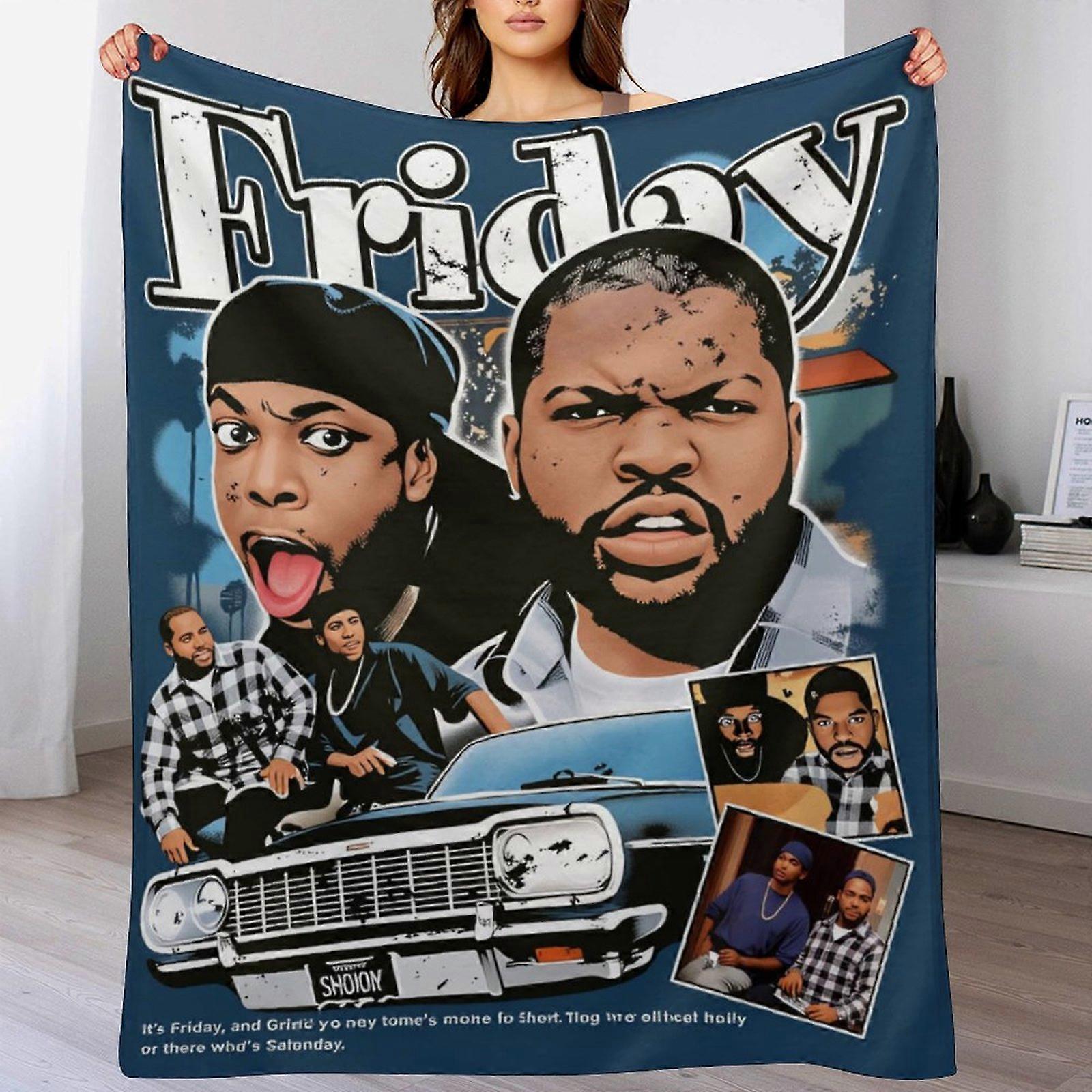 "Friday" Movie Retro Graphic & "You Got Smoke?" Text Print Flannel Blanket - Soft Warm Throw, 50x60 Inch, 90s Hip-Hop & Comedy Fan Gift (Bed/Living Ro