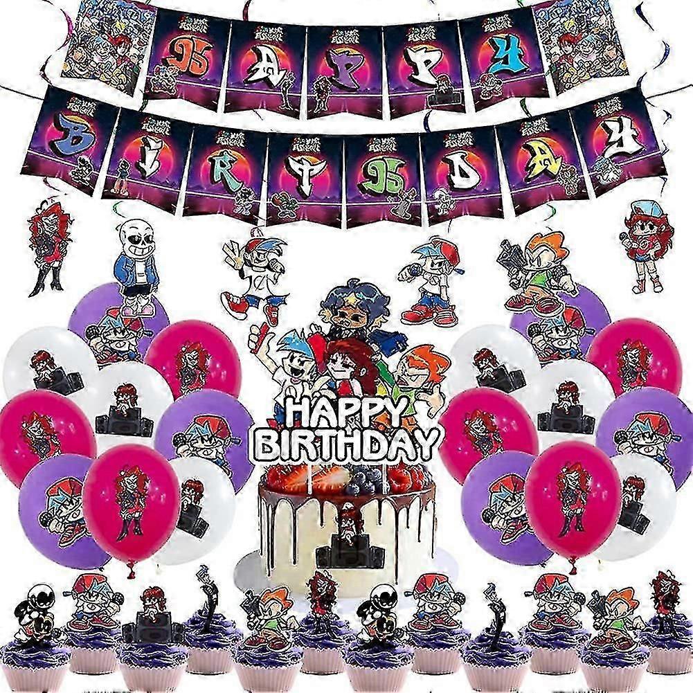 Friday Night Funkin Birthday Decorations Kit, 50 Pcs Friday Night Funkin Party Supplies Include Happy Birthday Banner Cake Topper Balloons Swirls Birt