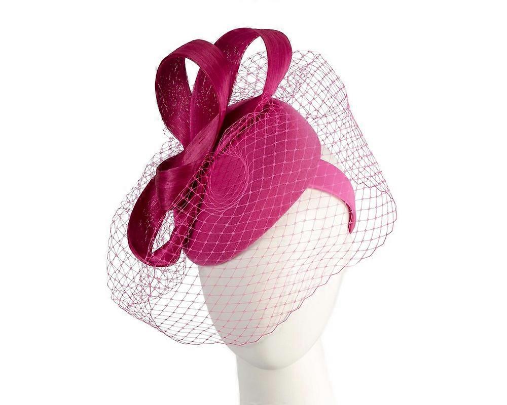 Fuchsia winter pillbox with face veil by Fillies Collection F719F