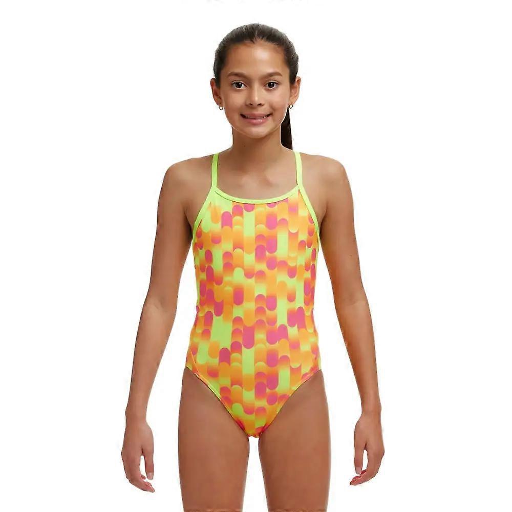 Funkita Girls Little Dotty Diamond Back Swimsuit - Yellow/Pink