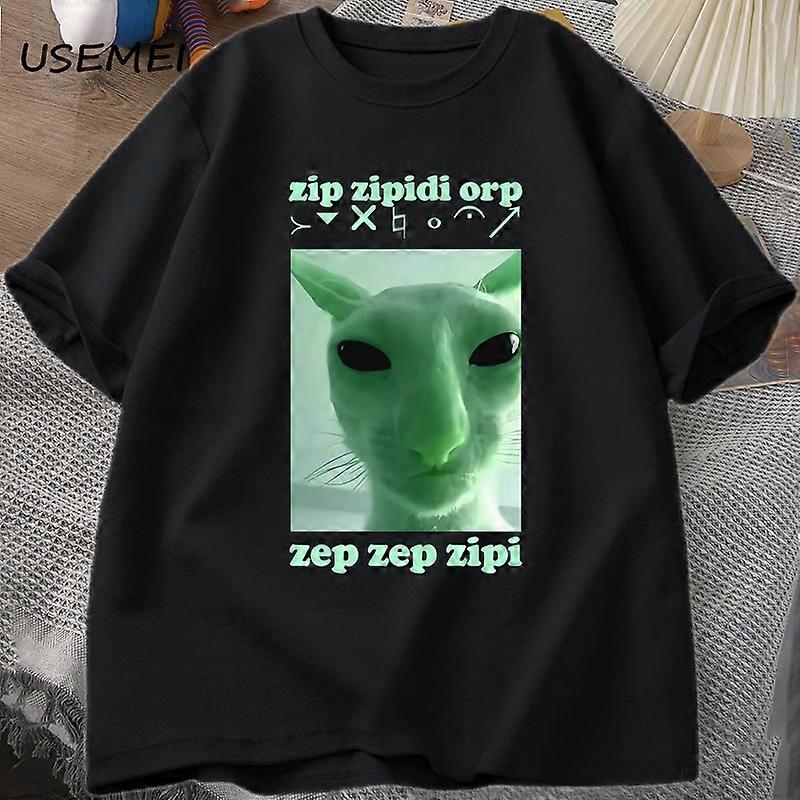 Funny Alien Cat Dank Meme T Shirt for Men Women Brainrot T-shirt Stupid Cringe Tshirt Harajuku Men's Oversized Cotton Tees