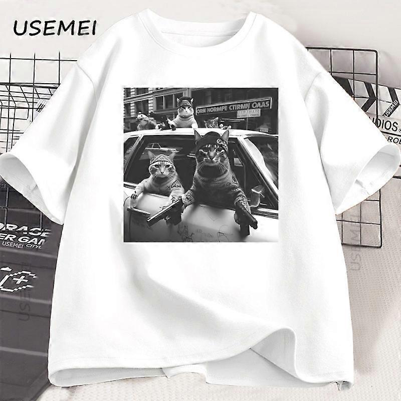 Funny Cat Gang T-Shirt Sarcastic Tshirt Unisex Oversized Graphic Tees Round Neck Short Sleeve Vintage T Shirt Mens Clothes