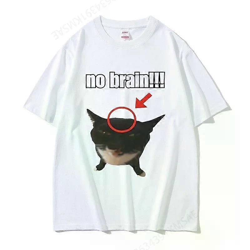 Funny Cat No Brain Graphic Print T Shirts Men Women Joke Humor Cute Kawaii Meme T-shirts Male Casual Tees Short Sleeve