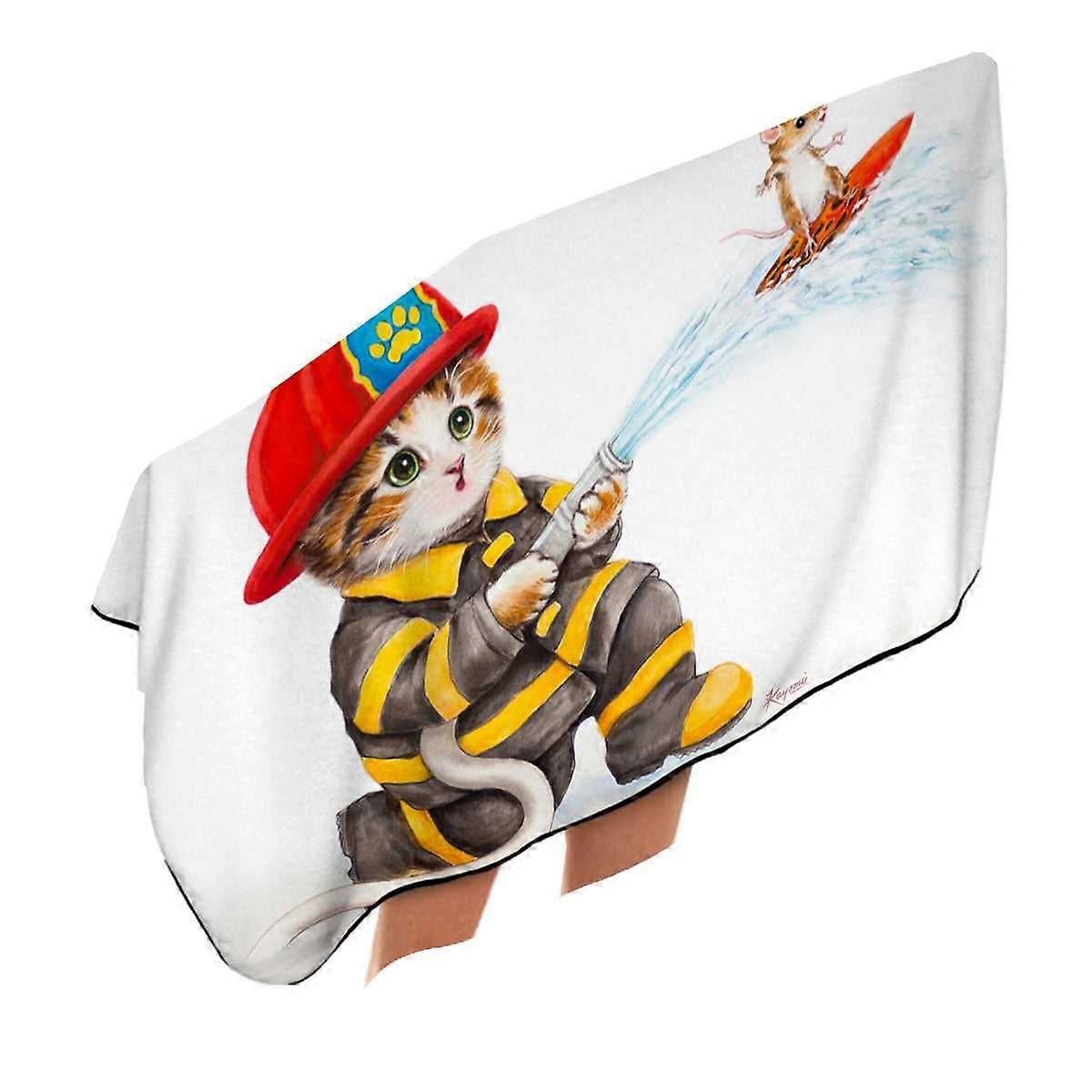 Funny Cats Cute Fire Fighter Kitten Microfiber Beach Towel