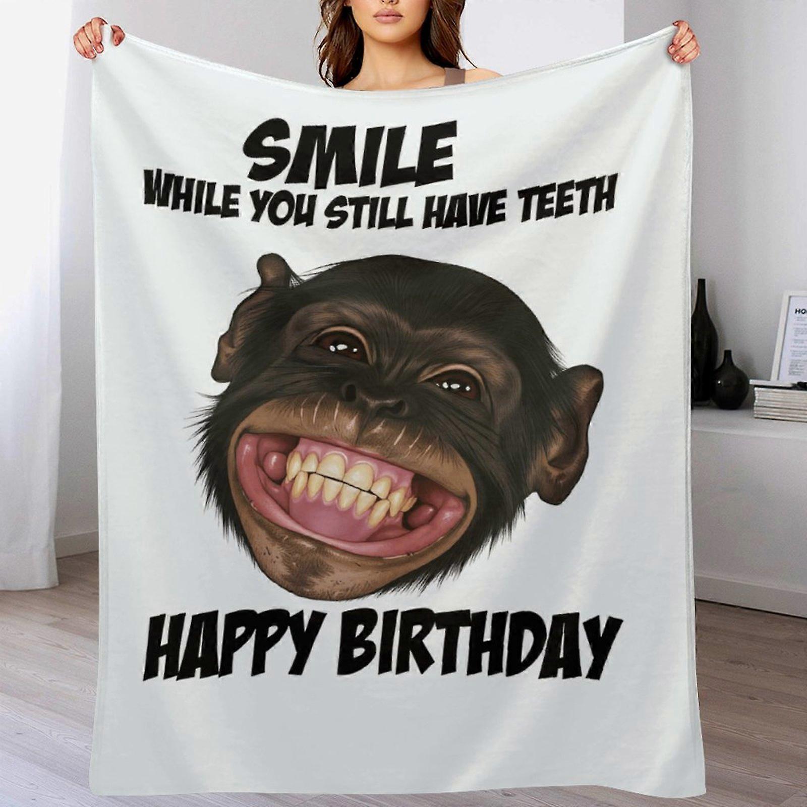 Funny Chimpanzee "Smile While You Have Teeth" Flannel Blanket - Soft Cozy Throw | Birthday Gift Decor