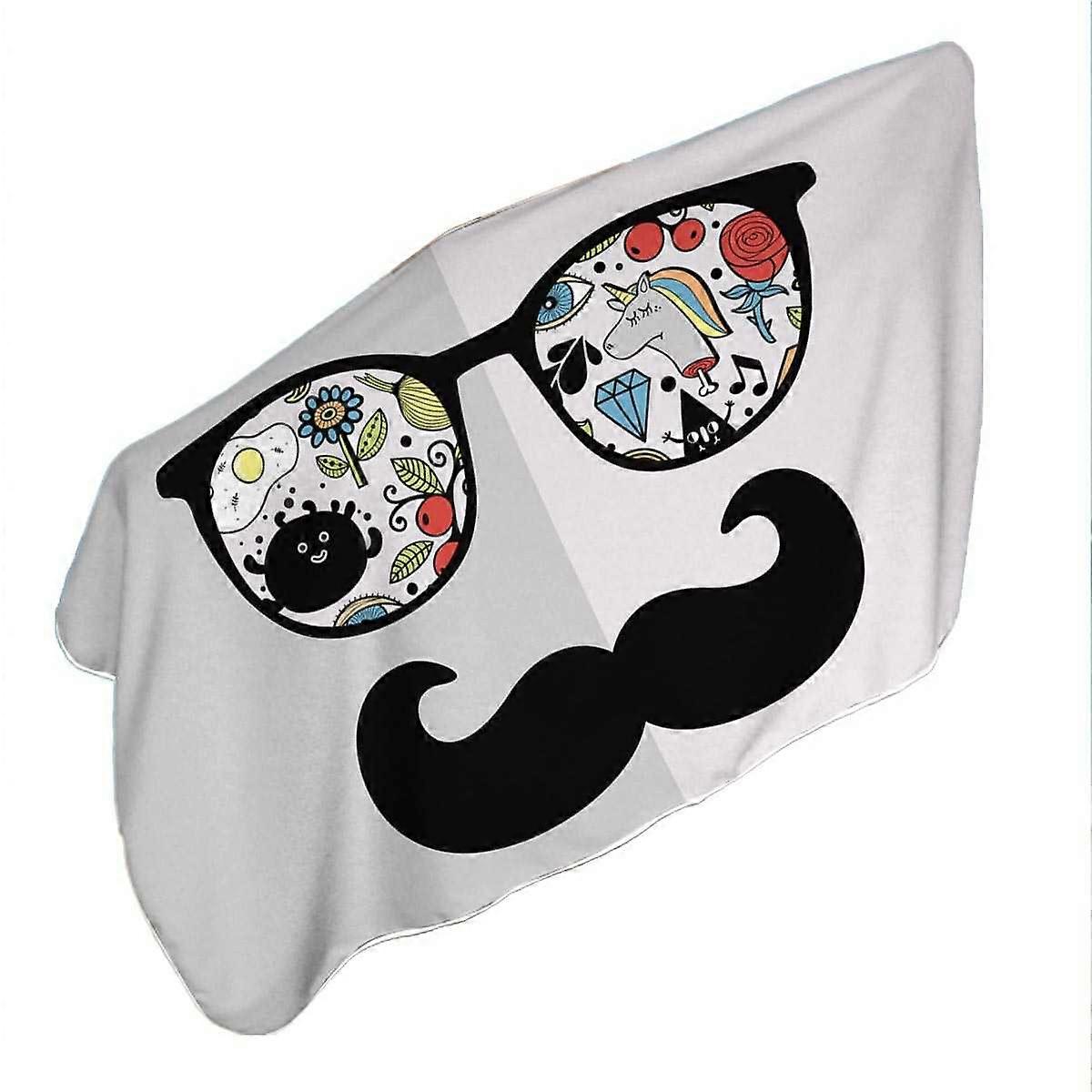 Funny Crazy Drawings on Cool Glasses Microfiber Beach Towel