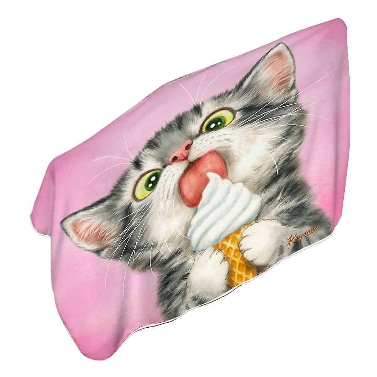 Funny Cute Cats Art Licking Ice Cream Kitten Microfiber Beach Towel