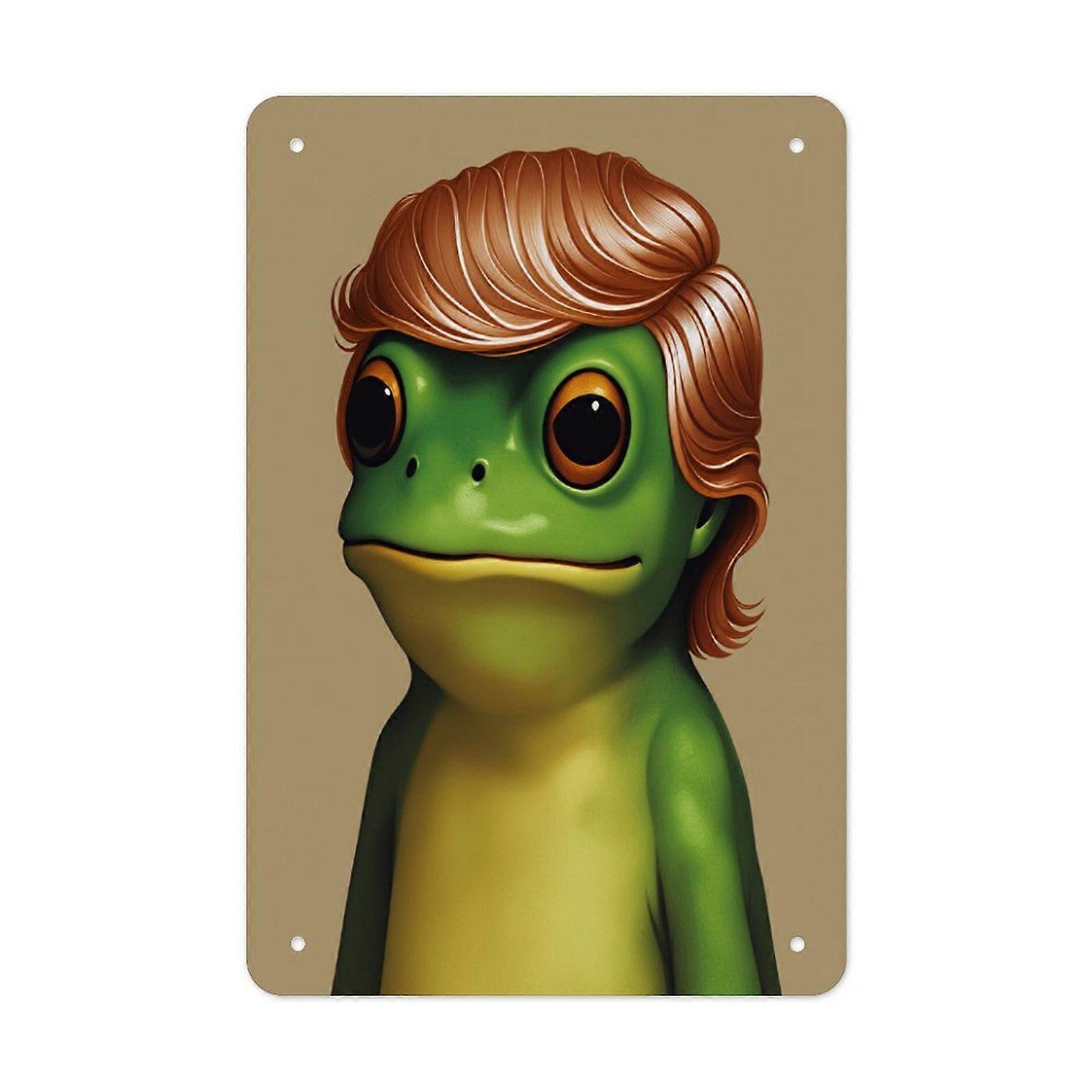 Funny Frog with Wig Metal Poster Wall Decoration for Home Living Room Humor Style Tin Sign