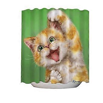 Funny Kittens Joyful Ginger Kitty Cat over Green Shower Curtain
