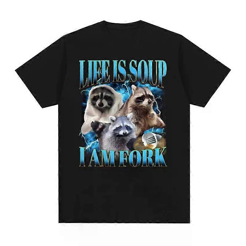 Funny Raccoon Life Is Soup I Am Fork Meme T Shirts Women Hip Hop Vintage Graphic T-shirts Casual Short Sleeve T Shirt Graphic