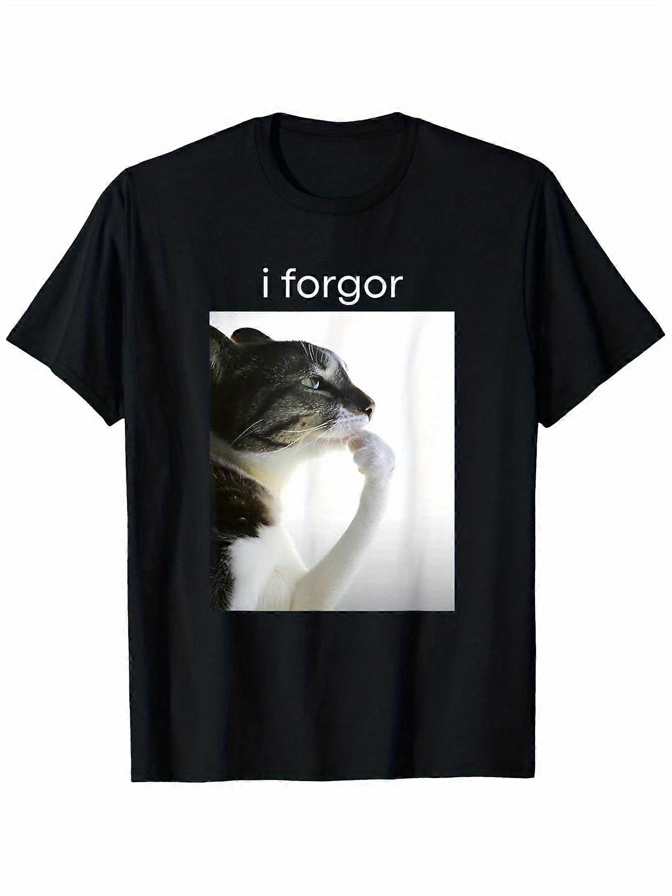 Funny Silly Cat Meme "I Forget" Cringe Brainrot Graphic T-Shirt Round Neck Short Sleeve Tee for Casual Wear Women Clothing Y2K