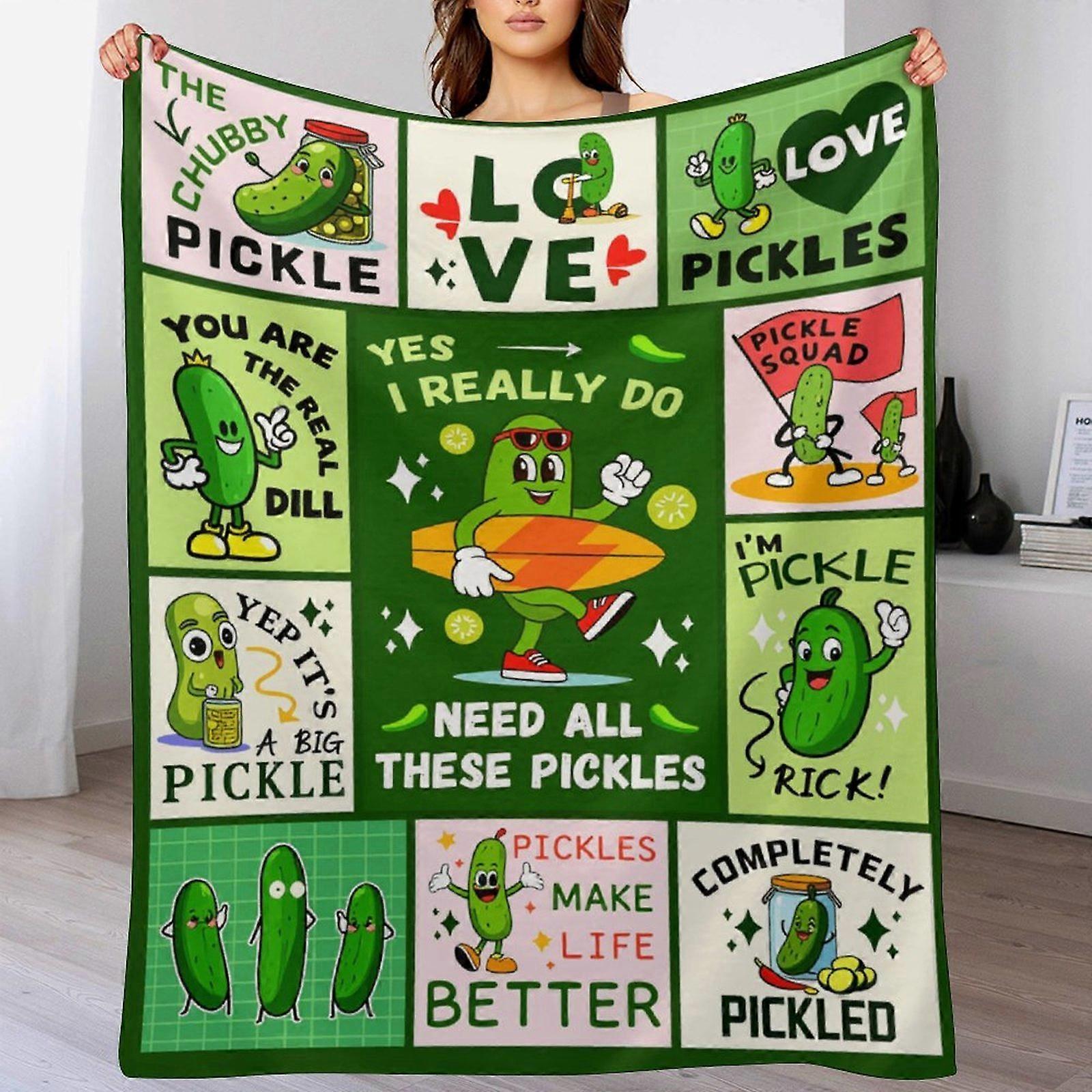 Funny Surfing Pickle Collage Print Flannel Blanket - Cozy Warm Throw | Humorous Gift for Pickle Lovers