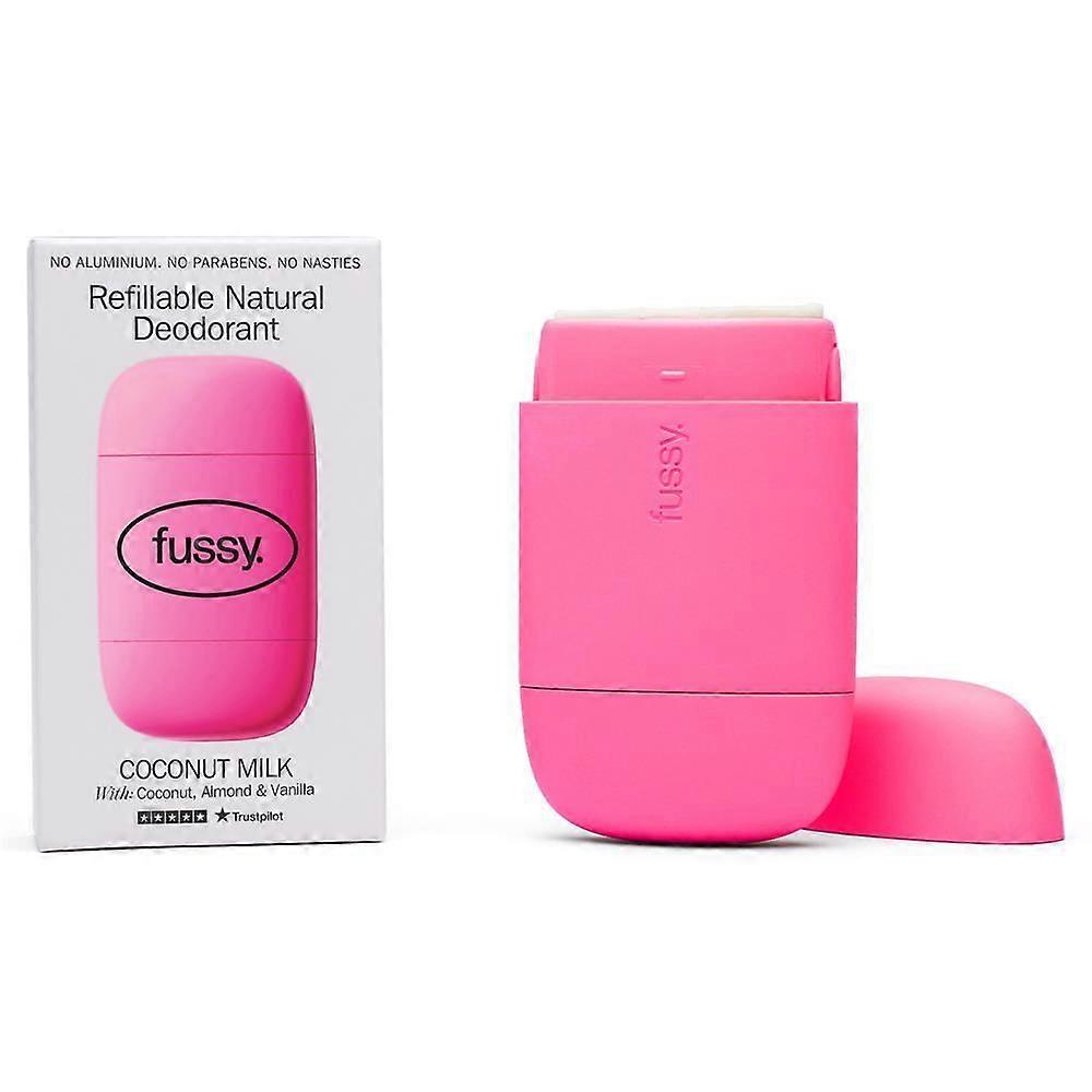 Discover the power of nature combined with science in the Fussy Refillable Natural Deodorant Coconut Milk. As the UK's top-rated natural deodorant on Trustpilot and featured on Dragons' Den, this innovative product offers effective, long-lasting freshness for up to 24 hours using only high-quality natural ingredients. Free from aluminium, parabens, and sulphates, this deodorant is thoughtfully formulated to be vegan and cruelty-free, ensuring a gentle yet powerful experience without compromising your values. It leaves no white marks or stains on clothing, making it perfect for everyday use. Our unique probiotic formula is scientifically proven to neutralise odour-causing bacteria, promoting a healthy skin environment while keeping you confidently fresh throughout the day. The soothing Coconut Milk scent, enriched with notes of coconut, almond, and vanilla, adds a warm and comforting touch to your morning routine. Designed with sustainability in mind, each plastic-free refill lasts between 4 to 6 weeks with daily application. Once finished, the refill can be composted in your garden or disposed of responsibly, reducing environmental impact. This Starter Pack includes a vibrant hot pink case and one refill, providing a stylish and eco-friendly deodorant solution. Key Benefits: Natural, effective odour control for 24 hours Aluminium-, paraben-, and sulphate-free Vegan and cruelty-free formulation Probiotic deodorant scientifically proven to neutralise odour-causing bacteria No white marks or stains on clothing Plastic-free, compostable refill lasting 4-6 weeks Soothing Coconut Milk fragrance with coconut, almond, and vanilla notes Use Cases: Ideal for those seeking a sustainable and effective alternative to conventional deodorants, this product is perfect for daily use at work, gym, or leisure activities. Its gentle, natural formula is suitable for sensitive skin while providing reliable odour protection throughout your busy day.