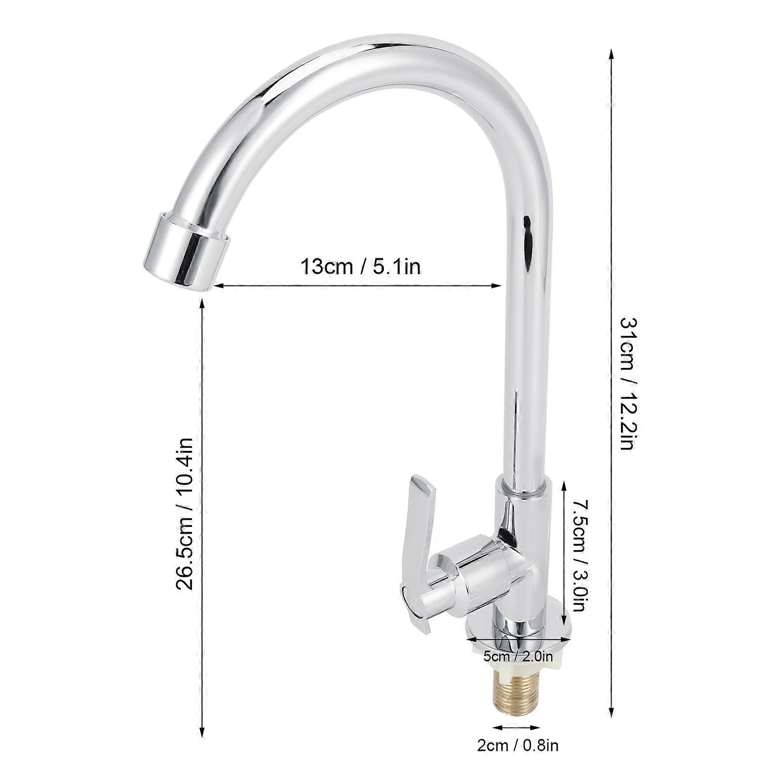 G1/2in Stainless Steel Kitchen Faucet 90 ° Rotation Cold Water Tap forkitchens, Bathrooms, Restaurants, Laundries Silvery