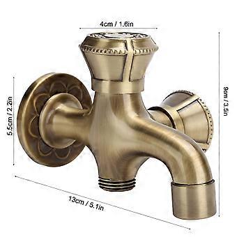 G1/2in Thread 2 Heads Kitchen Faucet Antique Brass Hot Cold Water Tap Water Home Kitchen Washing Machine Mop Pool ( 9x13cm/3.5x5.1 in)