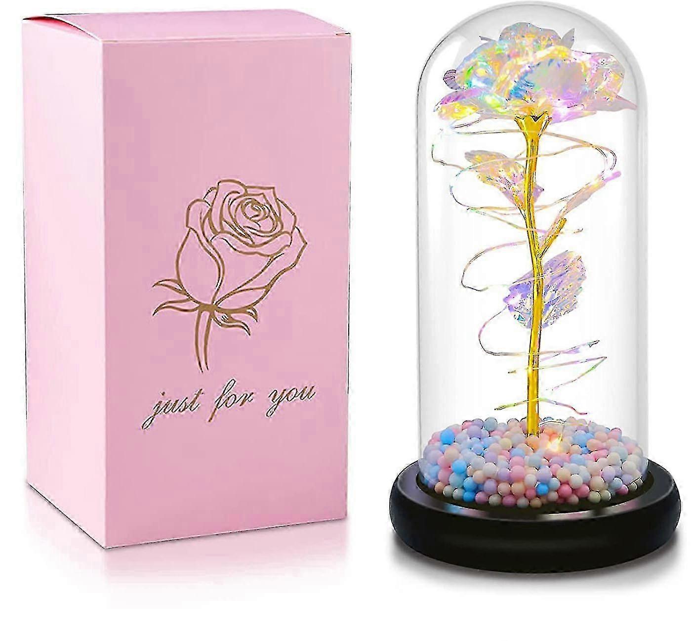 Galaxy Rose Artificial Forever Flower With Glass Dome Gifts For Valentines Day Anniversary