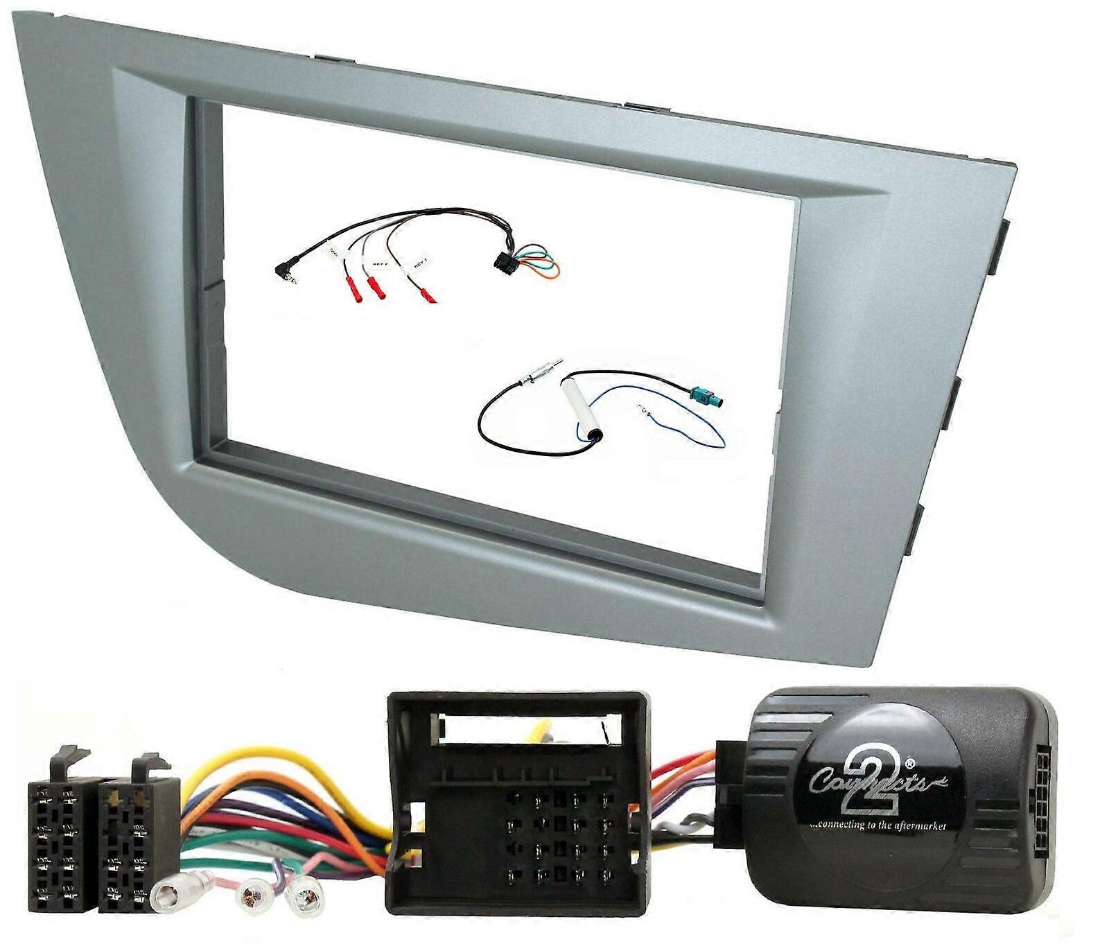 GALENA SILVER DOUBLE DIN FACIA STALK STEERING CONTROLS FIT KIT FOR SEAT LEON MK2