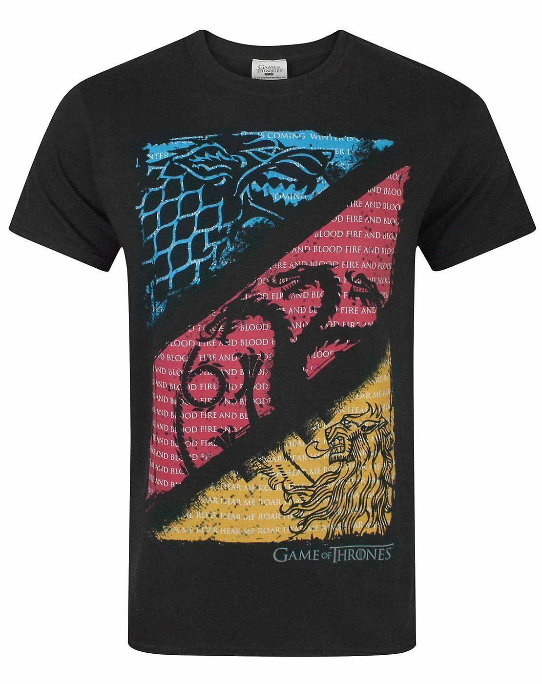 Game of Thrones Mens Short Sleeved T-Shirt Black House Stark, House Targaryen, House Lannister