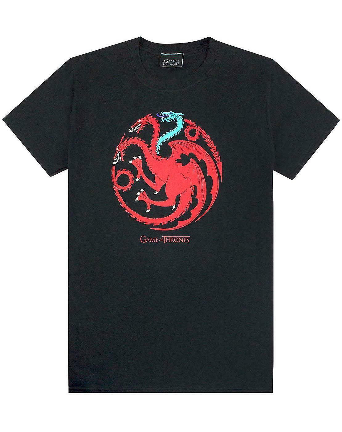 Winter is coming with this Game of Thrones Ice And Fire Dragons Emblem Men's T-Shirt. An awesome design with the three iconic dragons, now to be fire and ice, bringing the houses together for the final battle. This design is in bright red and blue colouring, contrasting against the black t-shirt perfectly. This t-shirt comes in a crew neck and short sleeves combo, in a standard men's fit. This item is 100 percent genuine licensed Game of Thrones merchandise and features official branding throughout. We want you to get the most out of your new t-shirt, so please be sure to follow all care label instructions and contact our dedicated customer service team for any additional information or sizing queries.