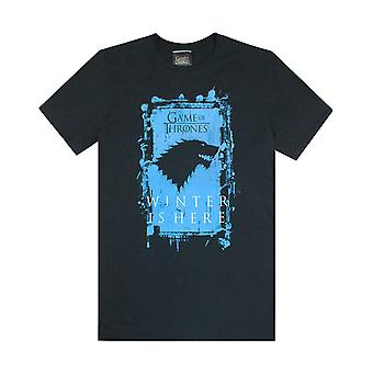 Game of Thrones Mens Short Sleeved T-Shirt Black Stark House Direwolf Graphic With Slogan