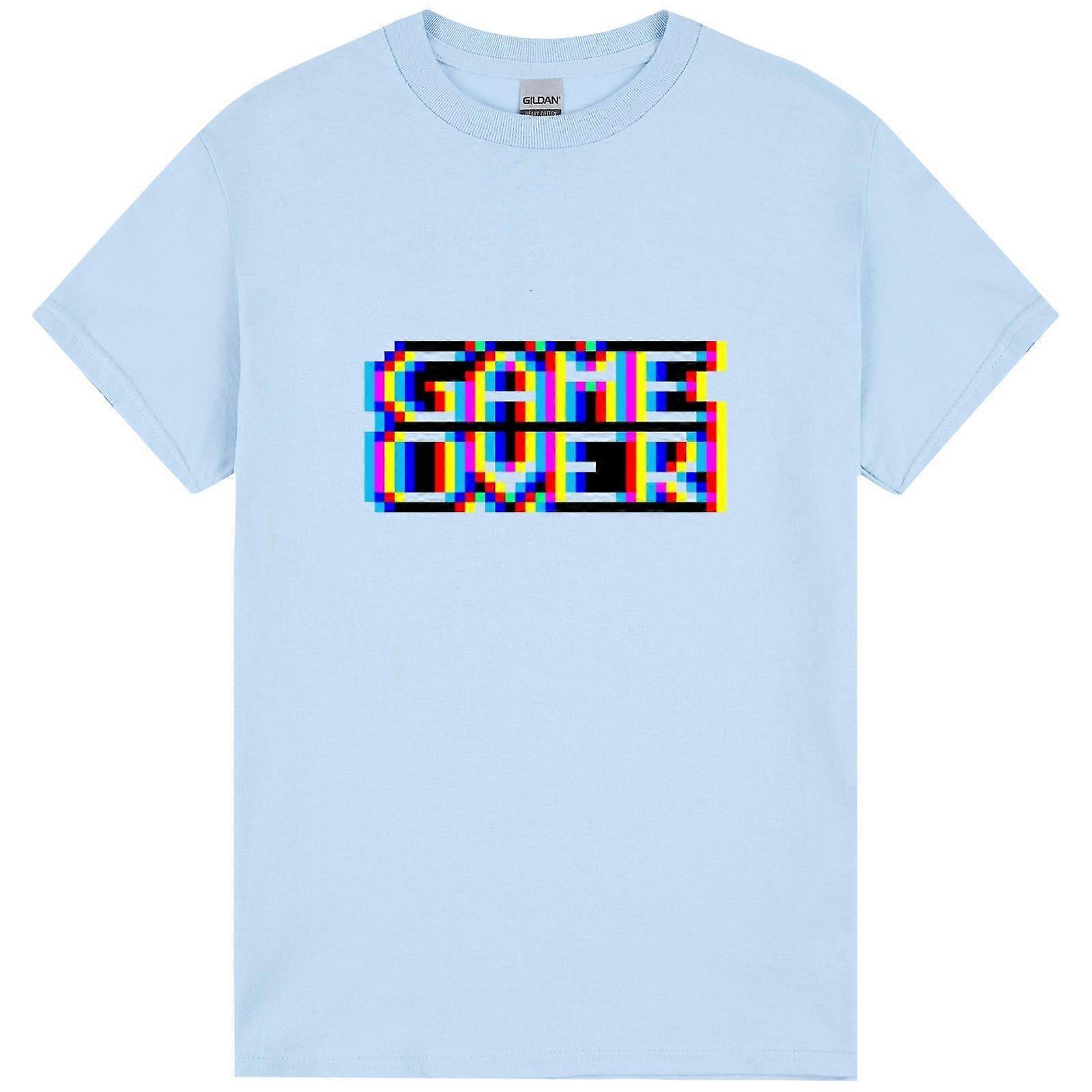 Game Over Gaming Funny Gamer Retro Light Blue Mens T Shirt Tee Top
