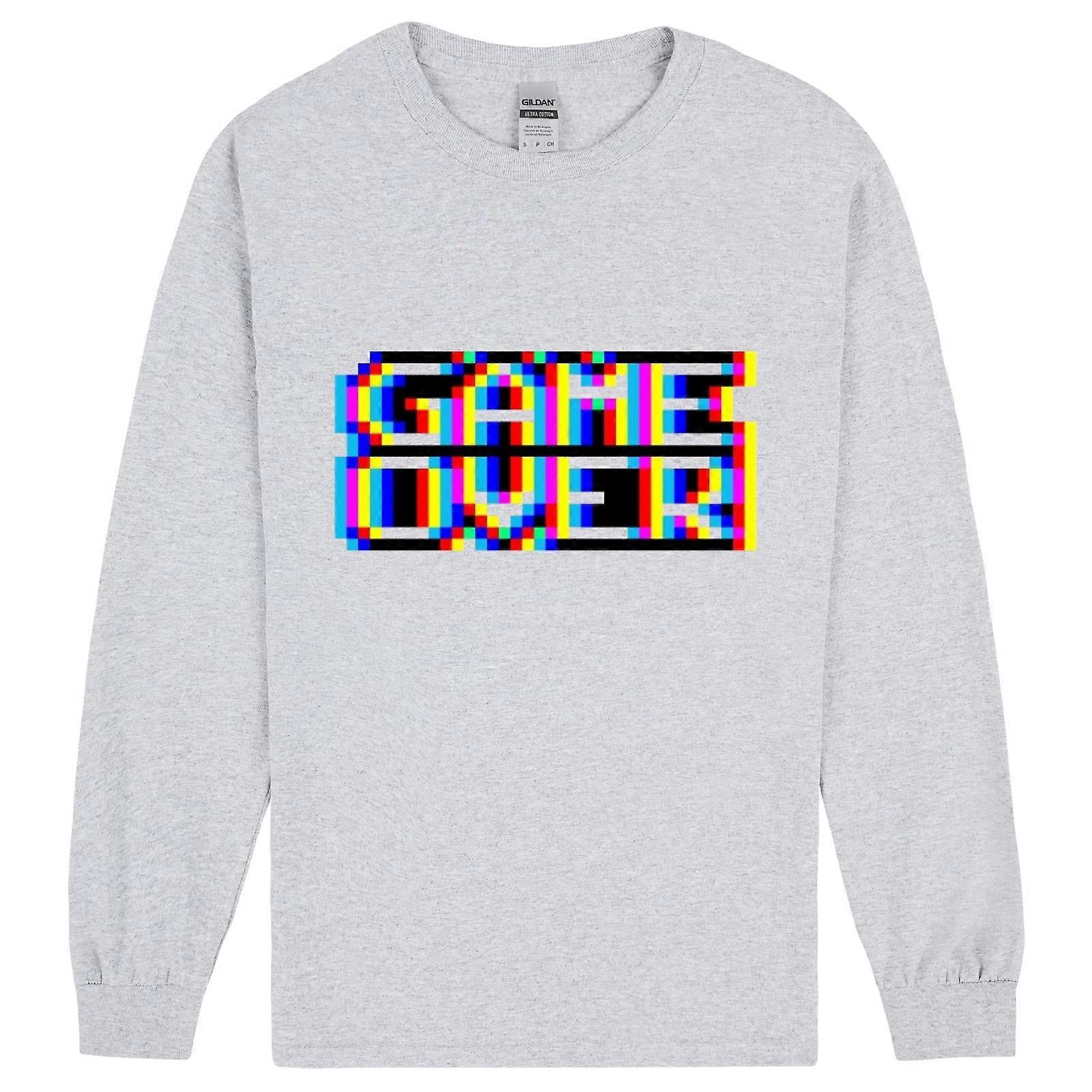 Game Over Gaming Funny Gamer Retro Mens Sports Grey Long Sleeve T Shirt Tee Top