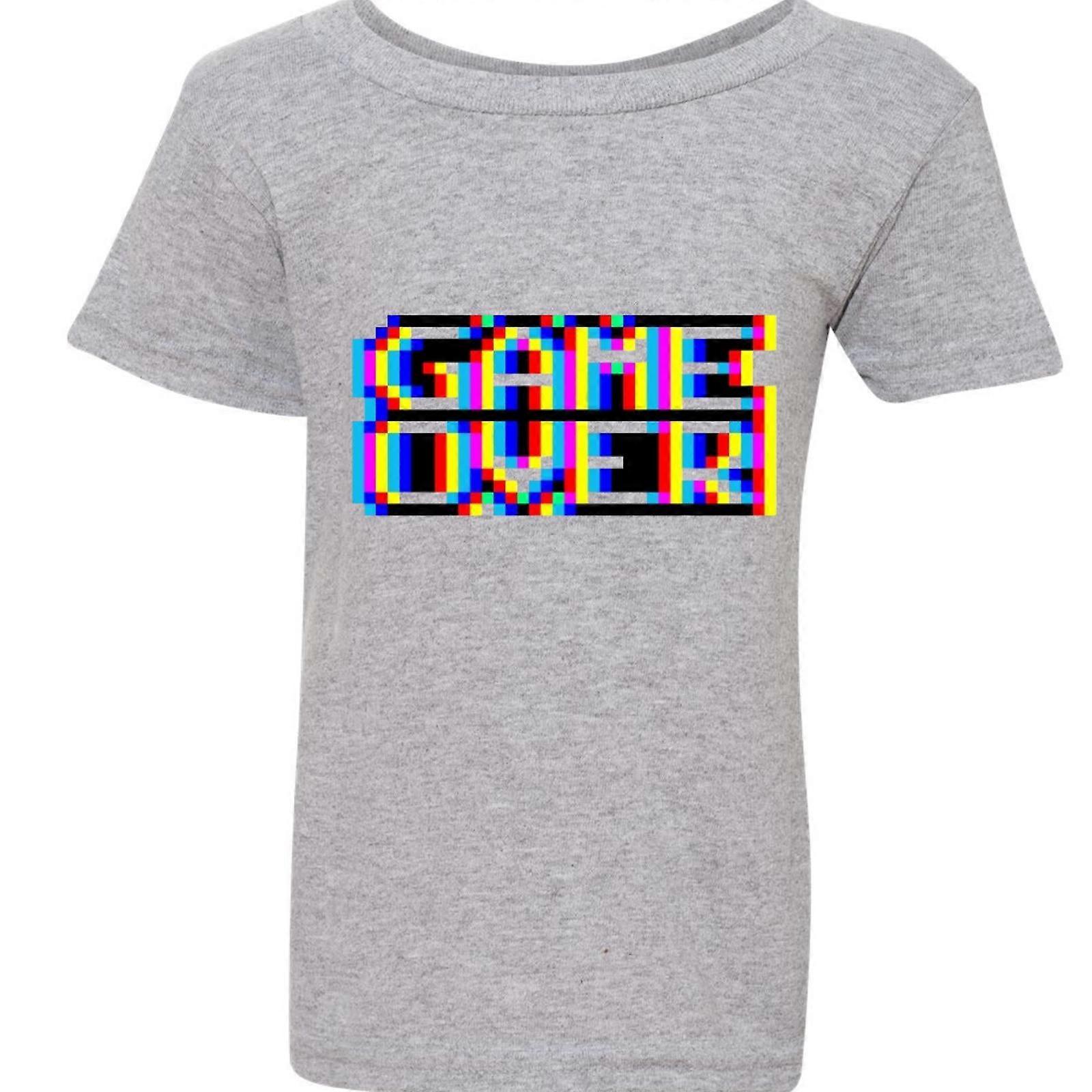 Game Over Gaming Funny Gamer Retro Sport Grey T-shirt Tee Top Baby Kids Boy Girl
