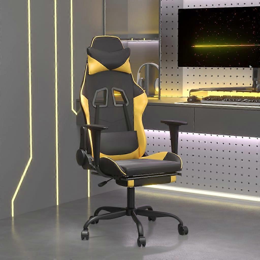 Gaming-Stuhl mit Fußstütze Schwarz und Golden Kunstleder