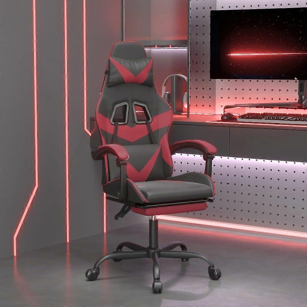 Gaming-Stuhl mit Fußstütze Drehbar Schwarz & Weinrot Kunstleder