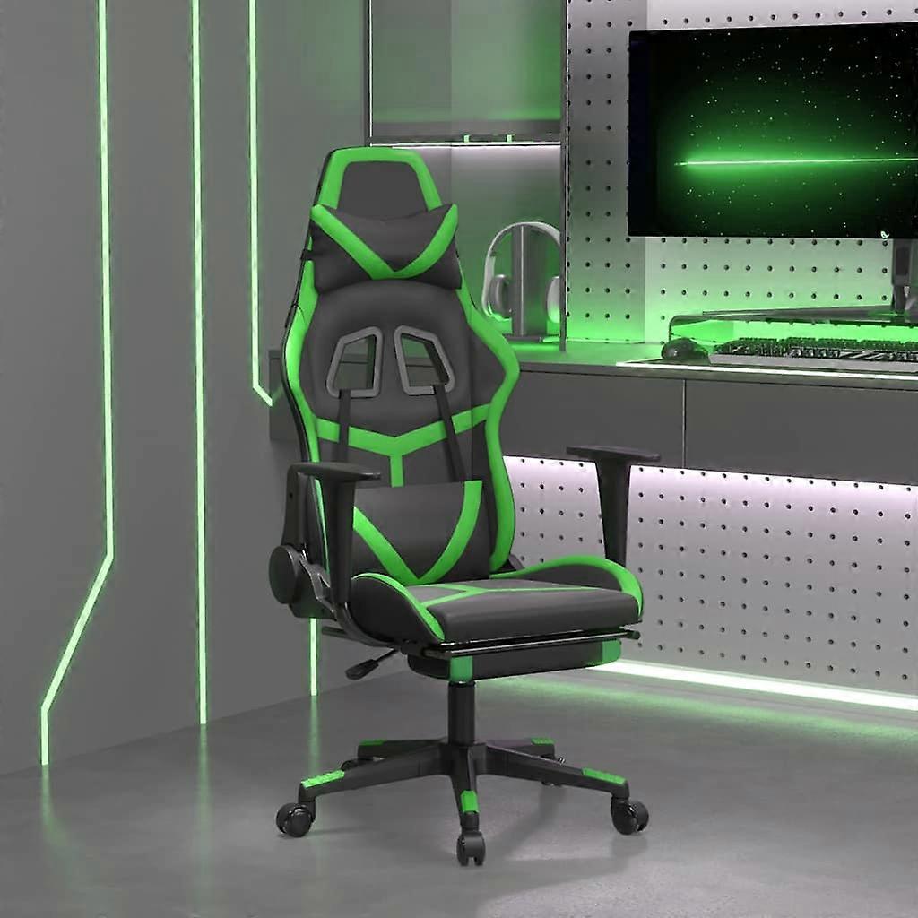 Gaming-Stuhl mit Massage & Fußstütze Schwarz & Grün Kunstleder