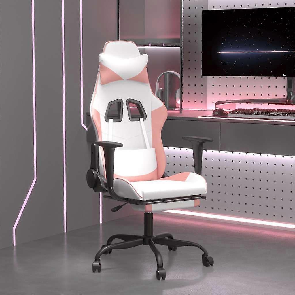Gaming-Stuhl mit Massage & Fußstütze Weiß und Rosa Kunstleder