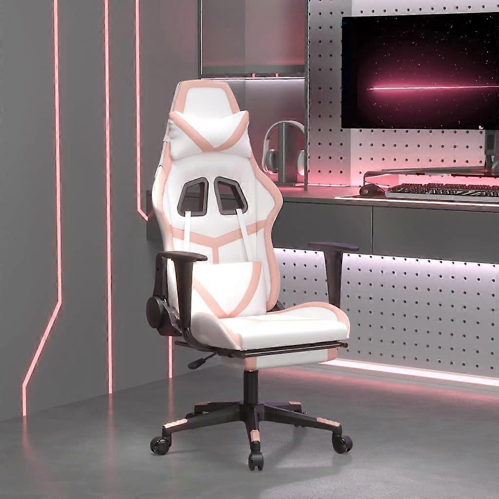 Gaming-Stuhl mit Massage & Fußstütze Weiß & Rosa Kunstleder