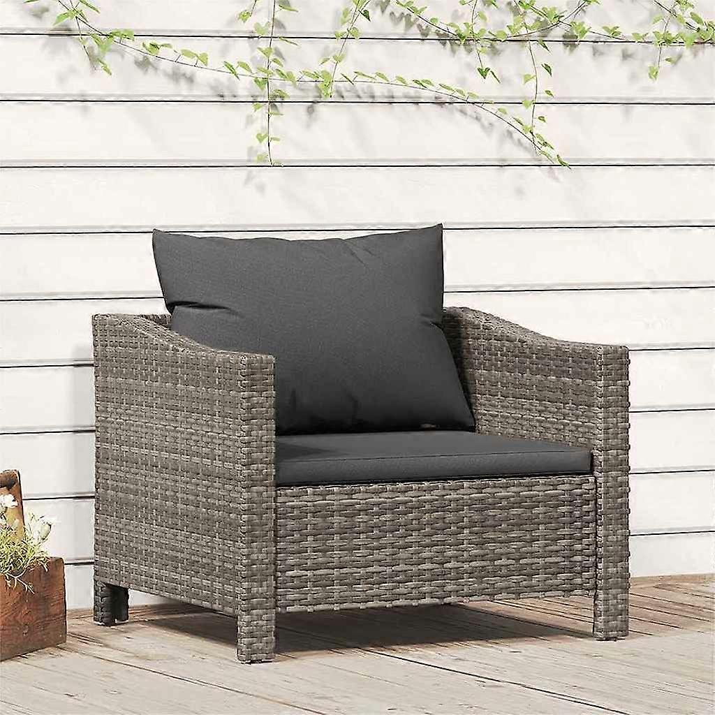 Gartensessel mit Kissen Grau Poly Rattan