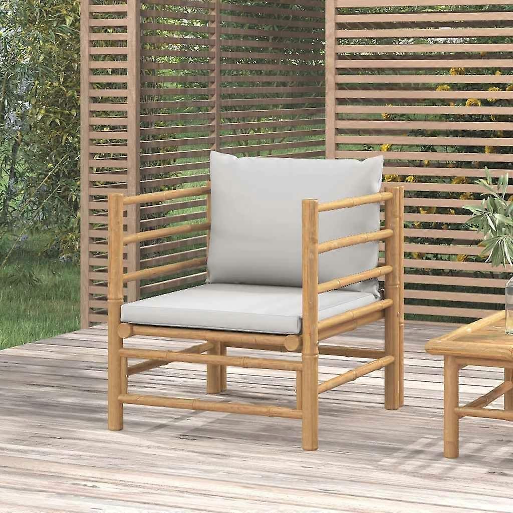 Genieße eine Tasse Kaffee oder Tee bei schönem Wetter in deinem Außenbereich mit diesem eleganten Gartensessel aus Bambus Langlebiges Material: Bambus ist für seine Flexibilität und Festigkeit bekannt. Bambus-Möbel sind eine gute Wahl, wenn du nach robusten Gartenmöbeln aus natürlichen Materialien suchst.Bequemes Sitzgefühl: Die Rückenlehne verleiht dem Gartensofa höchsten Sitzkomfort. Zum hohen Sitzkomfort tragen auch die dick gepolsterten Kissen bei.Modulares Design: Das Gartensofa lässt sich flexibel und einfach umstellen und kann mit anderen modularen Elementen aus unserem Webshop kombiniert werden, um dein ganz persönliches Garten-Lounge-Set zu erstellen Hinweis:Damit deine Gartenmöbel lange schön bleiben, empfehlen wir dir, sie mit einer wasserdichten Hülle zu schützen.Gut zu wissen:Um die Montage so einfach wie möglich zu machen, wird jedes Produkt mit einer Anleitung geliefert. Kissenfarbe: HellgrauMaterial: Bambus, naturbelassenKissenbezug: Stoff (100% Polyester)Füllung der Kissen: SchaumstoffAbmessungen: 63 x 69 x 65 cm (B x T x H)Sitzgröße: 55 x 65 cm (B x T)Armlehnenhöhe vom Boden: 65 cmSitzhöhe vom Boden: 30 cmAbmessungen des Sitzkissens: 55 x 65 x 5 cm (B x T x H)Abmessungen des Rückenkissens: 55 x 40 x 10 cm (B x T x H)Lieferung umfasst:1 x Gartensessel1 x Sitzkissen1 x Rückenkissen